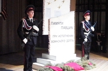 На торжественном митинге , посвященном этому событию, участвовали кадеты 8Б класса. Они возложили памятную гирлянду к подножию обелиска “Памяти павших при исполнении воинского долга”. -