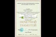 За многолетний и добросовестный труд Почетной грамотой Министерства образования и науки Республики Татарстан был награжден учитель технологии Хадиев Раис Василович. Мы его поздравляем и желаем ему успехов!