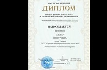 Поздравляем Шакирова Эльдара Зиннуровича, ученика 9Б класса, призера регионального этапа Всероссийской олимпиады школьников по основам безопасности жизнедеятельности. Также выражаем огромную благодарность Гарипову Алмазу Хурматовичу за подготовку призера в региональном этапе Всероссийской олимпиады школьников по основам безопасности жизнедеятельности. Желаем им дальнейших успехов! Молодцы!!!