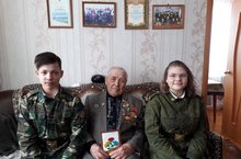 Волонтеры 8б класса Шарафутдинов Ратмир и Пинегина Ольга под руководством педагога- организатора навестили ветерана Великой Отечественной войны Набиуллина Галимуллу Шарифулловича. Он с радостью общался с детьми, делился своими воспоминаниями о войне. Учащиеся подарили ему открытку, сделанную своими руками.