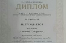 Призер всероссийской олимпиады по технологии 02.02.2019