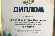Наша ученица 9 класса Кекишева Анастасия заняла второе место в Республиканском конкурсе "Я мастер", компетенция: Технология моды. Руководитель: учитель технологии Кекишева Наталья Юрьевна. Поздравляем!