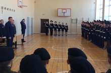Сегодня в школе, среди кадетских классов, прошел смотр строя и песни, приученный к празднованию Дня защитника Отечества.
