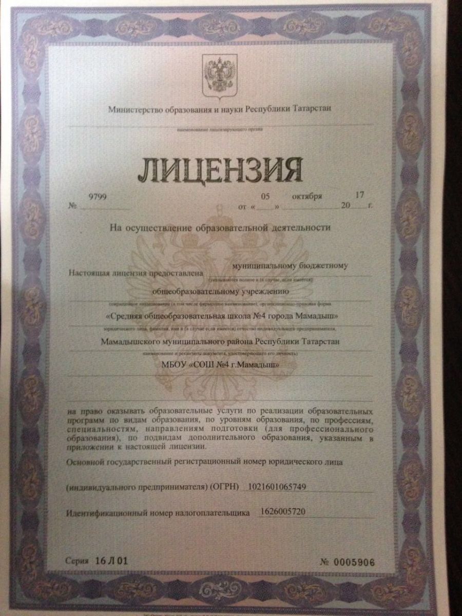 Муниципальное бюджетное общеобразовательное учреждение «Средняя общеобразовательная школа № 4 города Мамадыш» Мамадышского муниципального района РТ / Татарстан Республикасы Мамадыш муниципаль районы муниципаль бюджет гомуми белем учреждениесе «Мамадыш шәһәренең дүртенче санлы урта гомуми белем мәктәбе"