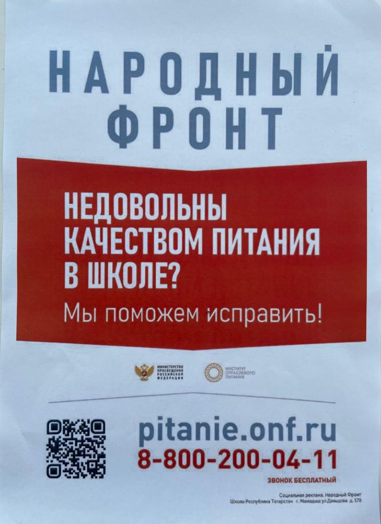 Плакат горячей линии ОНФ "Школьный завтрак»