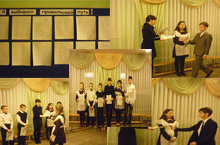 Сегодня на общешкольной линейке подведены итоги предметной олимпиады по русской литературе и конкурса рисунков "В тридевятом царстве" по мотивам русских народных сказок.