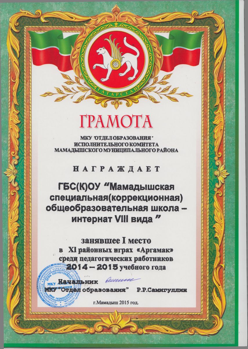| Короткое название: | ГБОУ "Мамадышская школа-интернат" |