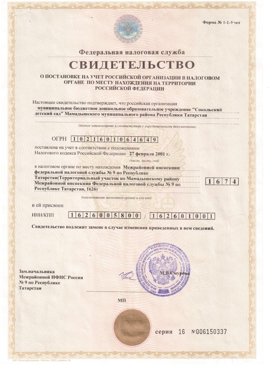 Муниципальное бюджетное дошкольное образовательное учреждение «Сокольский детский сад" Мамадышского муниципального района Республики Татарстан