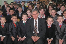 М.Галиев укучылар һәм укытучылар арасында. Туган ягына булган көчле яратуы аны һәрдаим безең белән очраштыра. Кичәдән соң сәләтле укучыларга җыр һәм моң серләренә төшенергә ярдәм итте.