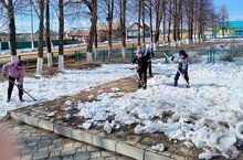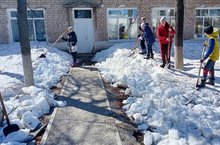 Со второй половины апреля начинаются двухмесячные мероприятия по очистке. Очередной субботник прошел по разбрасыванию снега вокруг школы.