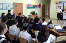 "Чулпан" иминият компаниясе хезмәткәре бездә кунакта. Ел саен мәктәп, ата-аналар һәм "Чулапн" иминият компаниясе кулга кул тотынышып эшли. Башлангыч класс укучыларына һәрдаим бүләкләр өләшеп тора.