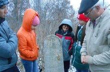 Халкым тарихын авыл зиратында кабер ташы язуларын өйрәнүдән башлана. . Тарих укытучысы Хайруллин Ринат Миннегаянович түгәрәккә йөрүче укучылар белән.