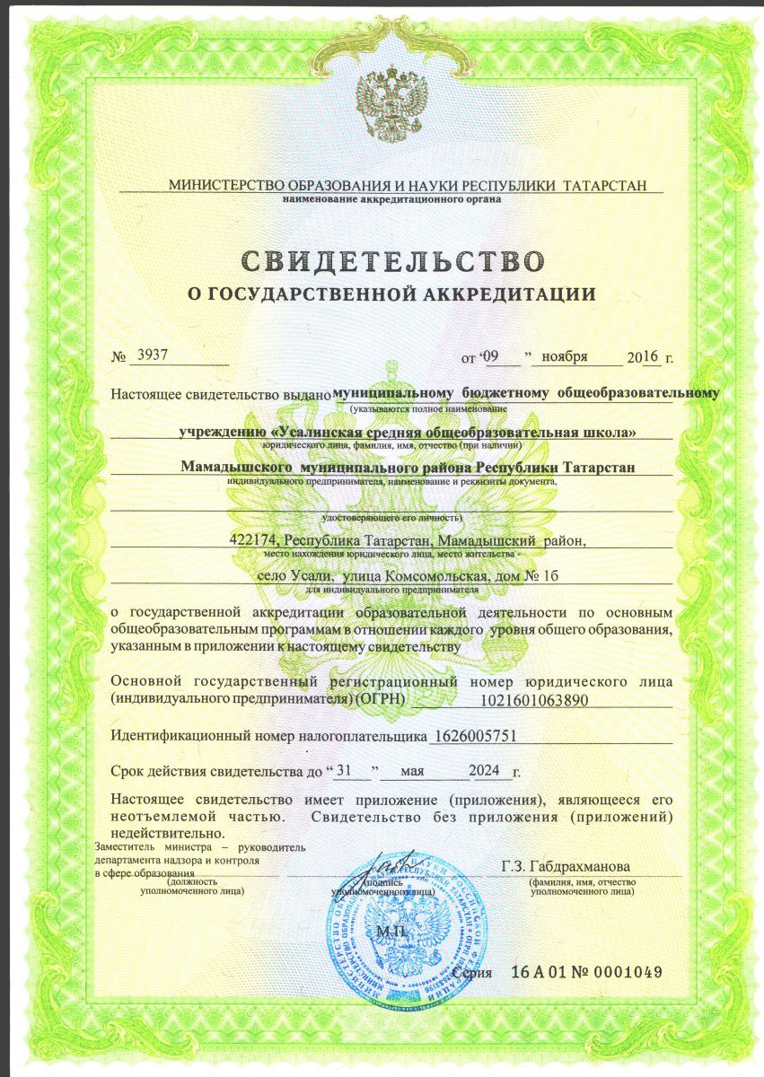 Муниципальное бюджетное общеобразовательное учреждение «Усалинская средняя общеобразовательная школа» Мамадышского муниципального района РТ