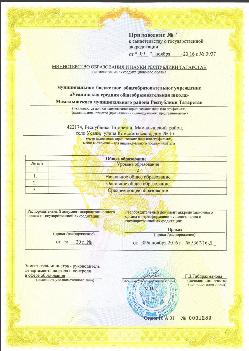 Адрес: 422174, Республика Татарстан, Мамадышский район, с. Усали, ул. Комсомольская, д.1Б