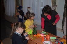 В фойе до начала представление прошел мастер -класс по изготовлению новогодних игрушек. Дети своими руками делали новогодние игрушки, оставляя их у себя.