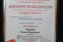 С 23-26 августа 2018 года в (Вытегорский район,Вологодская область) состоялся финал III Всероссийского детского фестиваля народной культуры "Наследники традиций". В которой приняли участие 250 детей из 34 субъектов Российской федерации. В команде Татарстана победители Республиканского фестиваля "Без бергэ", где также приняла участие наш методист МБОУ ДО "Дом детства и юношества" Нуриева Р.Р.