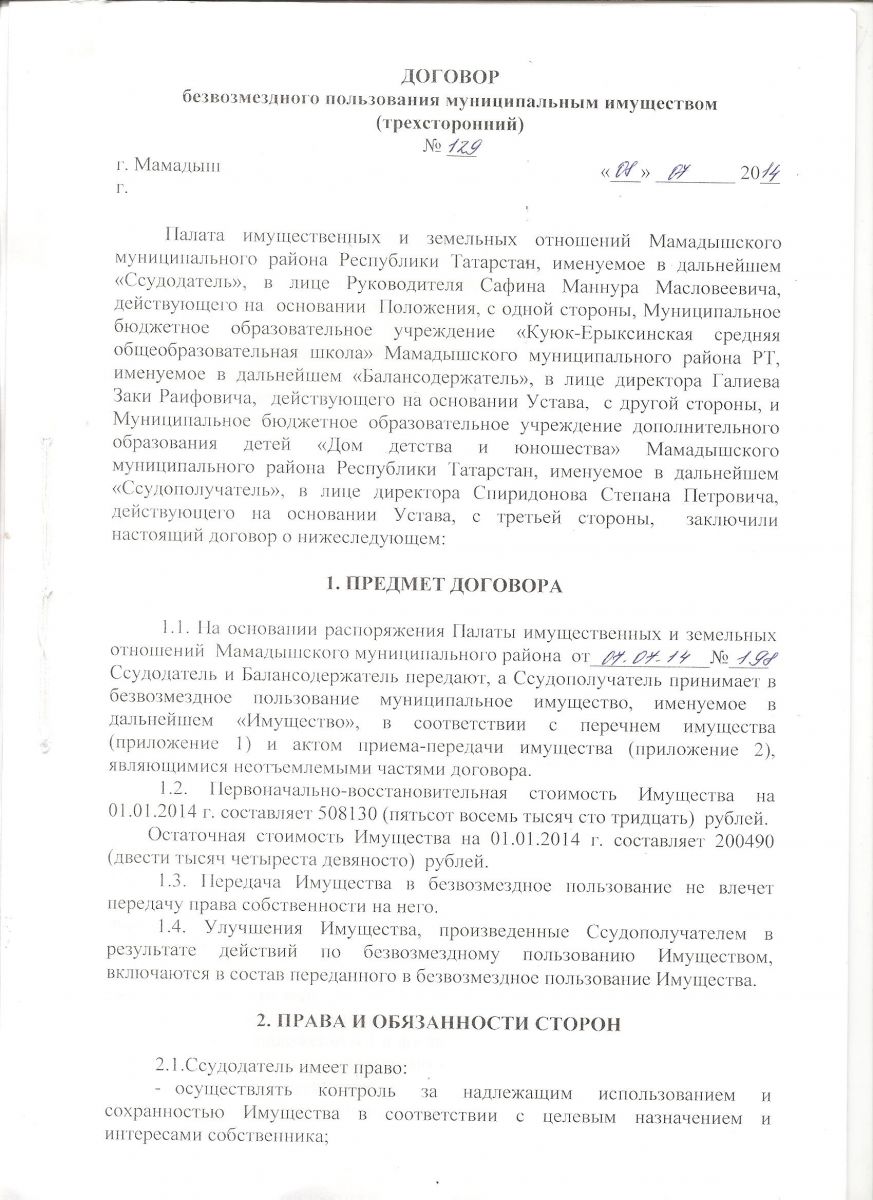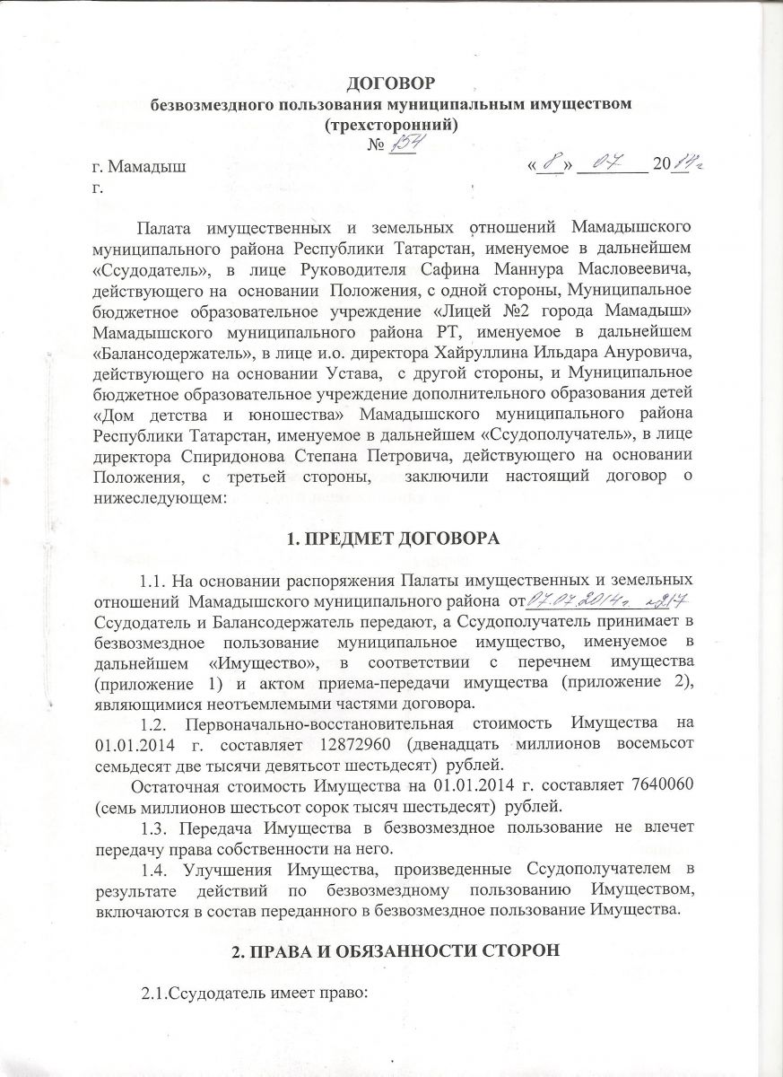 Договор "центр образования Лицей №2 им.ак. К.А.Валиева"
