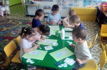 Балалар белән кәгазьдән кош оясы кисеп ябыштырдык. Башта ояның рәсемен карадык, фигураларны кабатладык, аннан оябызны ясау формасын, кирәкле фигураларны әзерләдек. Олылар кечкенәләргә ояны кисеп ябыштыруда булыштылар. Үзләренең эшләрен дә бик теләп, төгәл, жиренә җиткереп башкардылар.