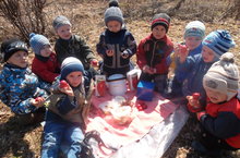 Җир ачылган урыннарда беренче яз чәчәкләре үсеп чыга: умырзая, үги ана яфрагы, күкебаш, нәүрүз гөл. Ә агачлардагы бөреләр көннән көн зурая, бүртә - яфрак ярырга әзерләнәләр. Без балалар белән табигатьтәге үзгәрешләрне күзәтеп, нәтиҗәләр чыгарабыз, экологик белемнәрен тирәнәйтәбез.Туган якның уянып килүче табигатенә мәхәббәт уяту, балаларның сәламәтлеген ныгыту безнең бурыч.