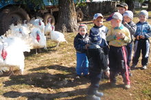 Тышкы билгеләренә (зурлыгы, үз - үзләрен тотышларына, тавышларына) карап, йорт кошларын аера белү күнекмәләрен үстерү, үзләренең белгәннәрен бәйләнешле итеп, хикәя формасында сөйләргә өйрәтү максатыннан хуҗалыкларда булган йорт кошлары белән таныштыруны дәвам итәбез. Балаларда күзәтүчәнлек, кызыксынучанлык һәм хайваннарга, кошларга сакчыл караш тәрбиялибез. Маннанов Рашит һәм Сәрмәдияләр хуҗалыгындагы күркәләр белән танышу.