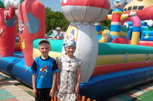 Рәнис белән Зиләбезгә уңышлары өчен Нөкрат яр буенда ачылган искиткеч ял паркы - аттракционга билетлар бирелде. Алар "Батутта" рәхәтләнеп сикерделәр, таудан шудылар.., суда йөзүче "Аккошларга" утырып "Капитан" ролен башкардылар. "Балаларны яклау көненә" бу бүләкне оештыручыларга рәхмәтебезне белдерәбез.