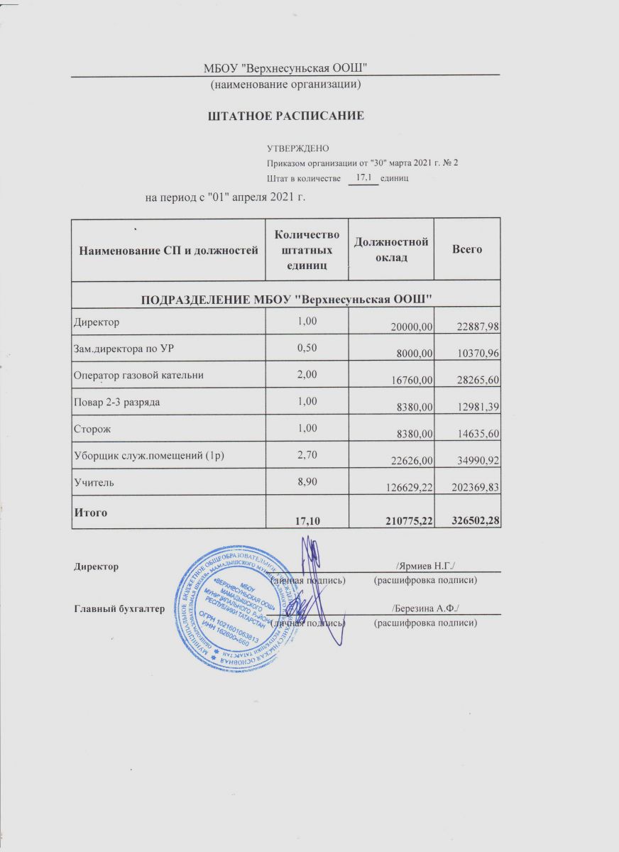 Штатное расписание