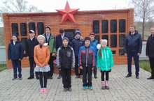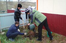 Мәктәбебез укучылары, Бачков Николай Петрович җитәкчелегендә, һәйкәл янына ак чыршылар утырттылар