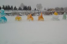 Мәктәптә яңа елга әзерлек көчле бара. Укучылар һәм укытучылар кардан бик матур әкият геройлары ясап куйдылар.