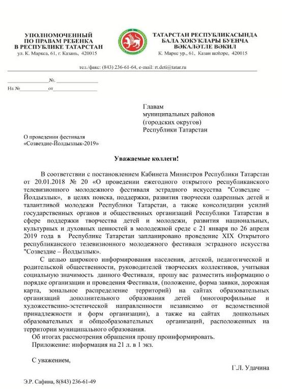 О проведении фестиваля "Созвездие-Йолдызлык 2019"