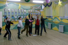 У главной елки ДК им. С. Гассара для детей прошли рождественские соревнования педагогами Волково Н.М.и Мирзоевой Ф.Х.