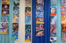 Космос- это неизведанная галактика своими законами и тайнами. Вот и наши дети включили свою фантазию и нарисовали путешествия по бескрайним космическим просторам; или исследование галактики; выход человека в открытый космос, и конечно портреты Юрия Гагарина. Более 100 детей приняли участие в конкурсе. Это говорит о том, что интерес школьников к космосу не ослабевает. Выставка конкурсных работ можно увидеть в фойе и на третем этаже ЦДТ.
