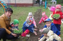 8 июня воспитанники МБДОУ «Бизякинский детский сад «Лейсан» вместе с воспитателем Закировой Д.М., выбрав долгожданный солнечный денек, без дождя, решили высадить цветы в подготовленные клумбы. Дети вместе с воспитателем взяли оборудование, необходимое для пересадки растений, коробки с рассадой и вышли на участок.