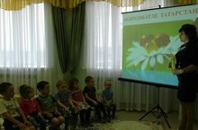 18 апреля в филиале МБДОУ “Бизякинский детский сад “Лейсан” восптатель Ефимова Л.М., провела НОД по теме «Добрый Татарстан».
