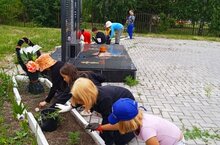 В преддверии Дня памяти и скорби воспитанники ЛТО "Поколение ЭКО" и пришкольного лагеря "Эколята" приняли участие в трудовом десанте "Память" на территории памятника воинам ВОв
