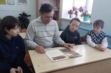 Проект "10 минут с книгой" в рамках месячника патриотического воспитания - это совместное чтение книг о солдатах, моряках, лётчиках и танкистах. Сегодня учитель математики Ахмадуллин Д.А. прочитал учащимся начальных классов книгу Льва Кассиля "Твои защитники"