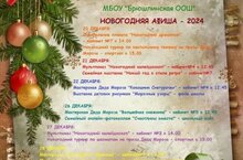 Добрый день! МБОУ "Брюшлинская ООШ" представляет Вам анонс новогодних мероприятий, которые планируется провести накануне Нового 2024 года! Пусть Новый год будет счастливым, интересным и удачным! Приглашаем всех желающих на наши мероприятия! Будет весело и познавательно!