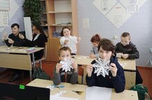 Сегодня, 26 декабря, классный руководитель Никитина А. И. провела мастер-класс для детей 2-7 классов по вырезанию объемных разноцветных снежинок...
