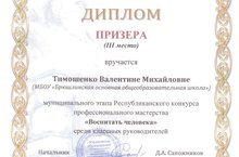 Учитель татарского языка МБОУ "Брюшлинская ООШ" Тимошенко В. М. стала призером (III место) муниципального этапа Республиканского конкурса профессионального мастерства "Воспитать человека" среди классных руководителей...