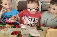 Педагог Анастасия Ивановна тәрбияләнүчеләргә тозның файдасы һәм зыян турында сөйләде. Балалар тозның физик сыйфатларын да искә алалар, тозның кайдан алынуын һәм аны ничек чыгаруларын беләләр.