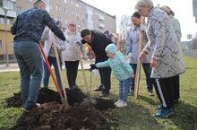 Якупова Амина, воспитанница младшей группы "Золотая рыбка" вместе со своей семьёй сегодня также приняла участие в экологической акции по посадке яблонь.