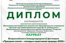 Наш детский сад получил диплом лауреата Всероссийского (международного) фестиваля "Праздник Эколят - молодых защитников природы 2022".