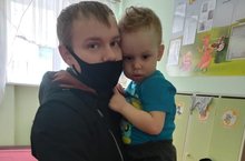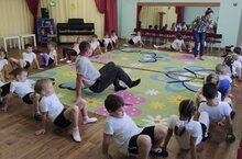 Папа воспитанника Абрамова Максима вместе с детьми группы выполнил утреннюю зарядку