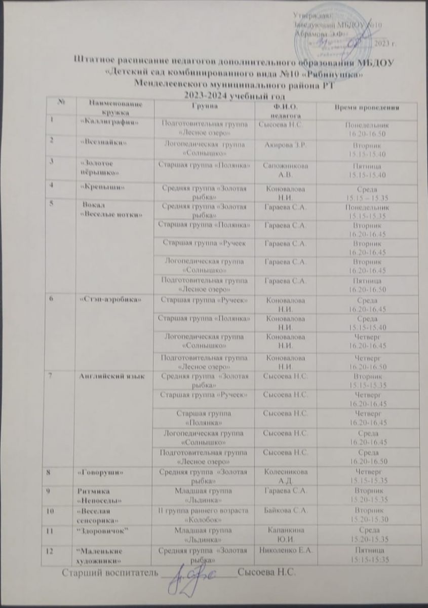 Расписание дополнительных образовательных услуг 2023-2024 учебный год