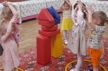 В канун праздника Дня космонавтики в подготовительных группах прошло спортивное развлечение " Школа космонавтов!". Соревновались два космических отряда: экипаж ракеты "Союз" и экипаж ракеты "Восток".