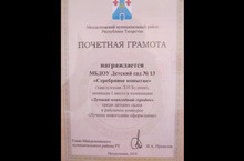 Коллектив занял первое место в номинации "Лучший новогодний городок" среди детских садов в районном конкурсе "Лучшее новогоднее оформление". ..