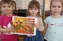 В рамках воспитания патриотических чувств детей и уважения к ветеранам В.О.В., в преддверии празднования 77 – летию Дня Победы в детском саду проходит тематическая неделя, посвящённая этому великому празднику. В старшей группе «Колокольчики» оформлен стенд «9 мая – День Победы» и выставка детских рисунков «Они сражались за Родину». В приемной оформлены коллективные работы ребят и воспитателей «Наша Великая победа» и «Уголки памяти»