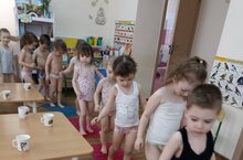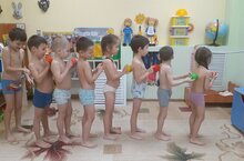 В группе «Радуга» воспитатель (Устинова С.Г.) в работе по укреплению здоровья и стимулированию двигательной активности используем: физические упражнения в ходе утренней гимнастики; подвижные игры; гимнастика после сна; — спортивные игры, а также закаливающие процедуры: прогулки на свежем воздухе; водные процедуры (умывание, мытье рук).