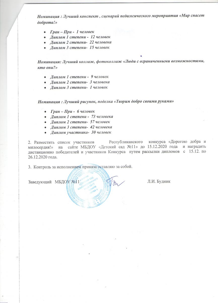 Приказ об итогах Республиканского конкурса "Дорогою добра и милосердия!"