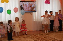 Под музыку композитора А. Рыбникова из кинофильма «Усатый нянь» самые маленькие воспитанники ДОУ робко вошли в зал, где их встречали их старшие друзья – ребята из подготовительной группы.