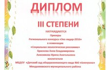 Педагоги МБДОУ «Детский сад № 6 «Аленушка» приняли участие в региональном конкурсе по экологическому воспитанию детей «ЭКОЛИДЕР - 2016»